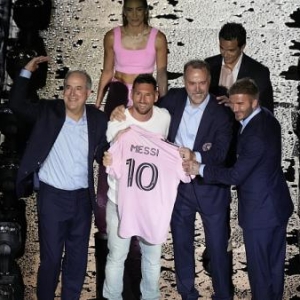 球王,终于来了。17日上午,梅西正式作为迈阿密国际新10号,亮相劳德代尔堡体育场——座无虚席的观众席与盛大的欢迎仪式,牌面和阵仗,完全对得住“Goat”的名分。俱乐部生涯的最后一站,如愿在事业、收入和家庭中取得最优解的梅西,月底即将迎来首秀,但在给迈阿密国际乃至大联盟带来轰动效应的同时,他面临的仍是放眼整个生涯都屈指可数的艰难挑战。梅西举起10号球衣。场面爆满,牌面拉满尽管持续的雷暴,让梅西亮相仪式的时间有所推迟,流程也压缩了不少,但对于冒雨前来见证球王驾临的迈阿密球迷而言,着实不虚此行。毕竟,为了这一天,迈阿密已经筹备了太久——仅以他们的主场劳德代尔堡体育场为例,为能让更多的球迷能目睹梅西英姿,球队特意扩建了2个看台,上座人数也提升至2.1万人。在温伍德艺术区,多位来自拉美的艺术家为梅西绘制了海报、壁画等艺术作品。俱乐部股东之一的贝克汉姆也亲自上阵,参与绘制梅西的巨幅壁画。俱乐部主席豪尔赫·马斯表示,“对于梅西的到来,再怎么宣传都不过分,因为这是全球性的事件。”梅西一家抵达迈阿密。 视频编辑 徐储立(00:24)在贝克汉姆的致辞、布斯克茨的开场白后,豪尔赫·马斯用英西双语,正式请出了这一天的男一号:“今晚是迈阿密的节日,一个新的篇章就此开启。梅西来到了这里。这是属于我们的时刻!我们可以改变这个国家的足球!”“现在我为大家请出迈阿密国际的10号、美洲的10号,以及全世界最好的10号——梅西!”在万千球迷的高声呐喊中,一袭白色T恤和牛仔裤的梅西,面容轻松地走进了球场,并向全场球迷致意:“我对于来到迈阿密充满期待。感谢豪尔赫·马斯,感谢贝克汉姆,是你们的欢迎,让我从来到这里的第一刻起,就感受到了家庭般的温暖。”梅西带着孩子参加欢迎仪式。比起此前在大巴黎时的疏离感,此番梅西着实没有各种包袱,他甚至恶作剧般地摸了摸贝克汉姆的肚子,证明其身材保持依旧。而在颠球环节,他还被“熊儿子”蒂亚戈“背刺”了一回——后者趁着梅西向观众质疑,出其不意地穿裆了父亲,然后一脸坏笑地举起双手庆祝。本场也堪称是足坛两大家庭的Party,除去梅西妻儿,维多利亚、贝克汉姆三子克鲁兹与女儿“小七”哈珀,也和梅西的孩子们其乐融融。除去老战友布斯克茨,不少北美体育界的名人,也向新伙伴梅西表达了祝福——金州勇士当家球星库里,录制了欢迎VCR,汤姆·布雷迪也为梅西送上了祝福。球王效应正如2年前转战巴黎时引发的轰动,6月7日自宣加盟迈阿密国际的梅西,也让球队感受到了空前的热度。在此之前,尽管迈阿密国际的资方之一是“万人迷”贝克汉姆,但球队的社交媒体粉丝不过90万出头,但在梅西官宣之后,不到1天时间粉丝就暴涨至450万。短短一周,国际队涨粉670万,正式超越迈阿密热火,成为当地最受社媒关注的体育团队。更神奇的反差,在于两队战绩的天渊之别——彼时的热火,正以“黑八奇迹”在总决赛硬刚掘金,而连战连败的国际,却在大联盟东部垫底……梅西拥抱贝克汉姆。待到梅西飞临迈阿密,并穿着拖鞋逛超市,对球迷合影有求必应时,迈阿密国际再次放了个卫星——他们在Instagram上粉丝达到860万,让NFL、NHL、MLB和MLS的所有球队都甘拜下风。即便放在整个北美职业体育圈,目前也只有金州勇士(3080万)、洛杉矶湖人(2280万)、克利夫兰骑士(1240万)和芝加哥公牛队(980万)的粉丝高于迈阿密国际,而只要梅西能在迈阿密履行完合同,球队跻身千万粉丝俱乐部,似乎只是时间问题。走到哪里红到哪里的粉丝追随,或许只是“看上去很美”,但梅西带给大联盟的真金白银,更无须多言。在梅西确认加盟的第二天,本赛季迈阿密国际队所有比赛的门票,包括主场和客场,已经全部售罄。而梅西7月22日可能首战的主场球票,转售价甚至上涨了3到4倍。根据场次和位置的不同,一些球票一度被炒至上万美元。作为梅西转战北美的重要幕后助力,苹果已经和大联盟及梅西本人,就未来赛事海外订阅费用分成达成协议,在梅西加盟之后,Apple TV上的美国职业足球大联盟季票应用的观众和订阅量,也已迎来一波猛涨。事实上,梅西不但是大联盟头号聚宝盆,连南美足协都打起了这位游子的主意。就在梅西亮相前48小时,阿根廷媒体爆料,南美足联和中北美及加勒比足联达成协议,北美球队从2024年开始参加南美解放者杯(墨西哥曾在2000-2016年间派队参加)。而早在今年1月,中北美及加勒比足联就已经宣布将举办一项全新的美洲四角锦标赛,中北美及加勒比足联和南美足联各自派出两支最好的球队参加。布斯克茨也加盟了迈阿密国际。三大挑战,都是史诗难度风光无限的亮相之后,仍旧要走上球场用脚说话的梅西,面临的却是职业生涯史无前例的挑战。挑战之一,自然是让迈阿密国际摆脱在大联盟积贫积弱的处境。梅西亮相之前,贝克汉姆的球队已经连续11轮不胜,只拿到3分。即便曾执教梅西的阿根廷名帅马蒂诺临危受命,但在执教首战,还是被圣路易斯3球痛击……按照美职联季后赛规则,东部前7的球队将自动落位,第8名和第9名,必须展开附加赛决出最后一个席位。目前,名列东部第9的“守门员”,是华盛顿特区联队,球迷们或许不知道这支球队的核心是谁,但他们的主帅却尽人皆知——鲁尼。作为欧冠决赛两负梅西的输家,“小胖”显然不想第三次成为梅老板的背景板。现实似