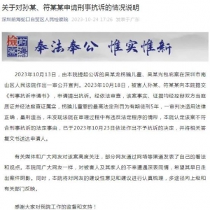 中新网10月24日电 深圳前海蛇口自贸区人民检察院24日通过官方微信发布《关于对孙某、符某某申请刑事抗诉的情况说明》,备受关注的孙卓被拐案抗诉被驳回。 其中提到,2023年10月13日,由本院提起公诉的吴某龙拐骗儿童、吴某光包庇案在深圳市南山区人民法院作出一审公开宣判。2023年10月18日,被害人孙某、符某某向本院提交《刑事抗诉申请书》,申请提出抗诉。经依法审查,该案事实、证据均经控辩双方当庭质证并经法庭查证属实,拐骗儿童罪的最高法定刑罚为有期徒刑5年,一审判决适用法律正确,量刑适当,未发现法院在审理过程中有违反法定程序的情形,本院认定该案不符合刑事抗诉的法定事由,已于2023年10月23日依法作出不予抗诉的决定,并将相关答复文书送达申请人。 图自深圳前海蛇口自贸区人民检察院微信公众号 【编辑:陈海峰】 来源网址:https://www.chinanews.com/sh/2023/10-24/10099851.shtml